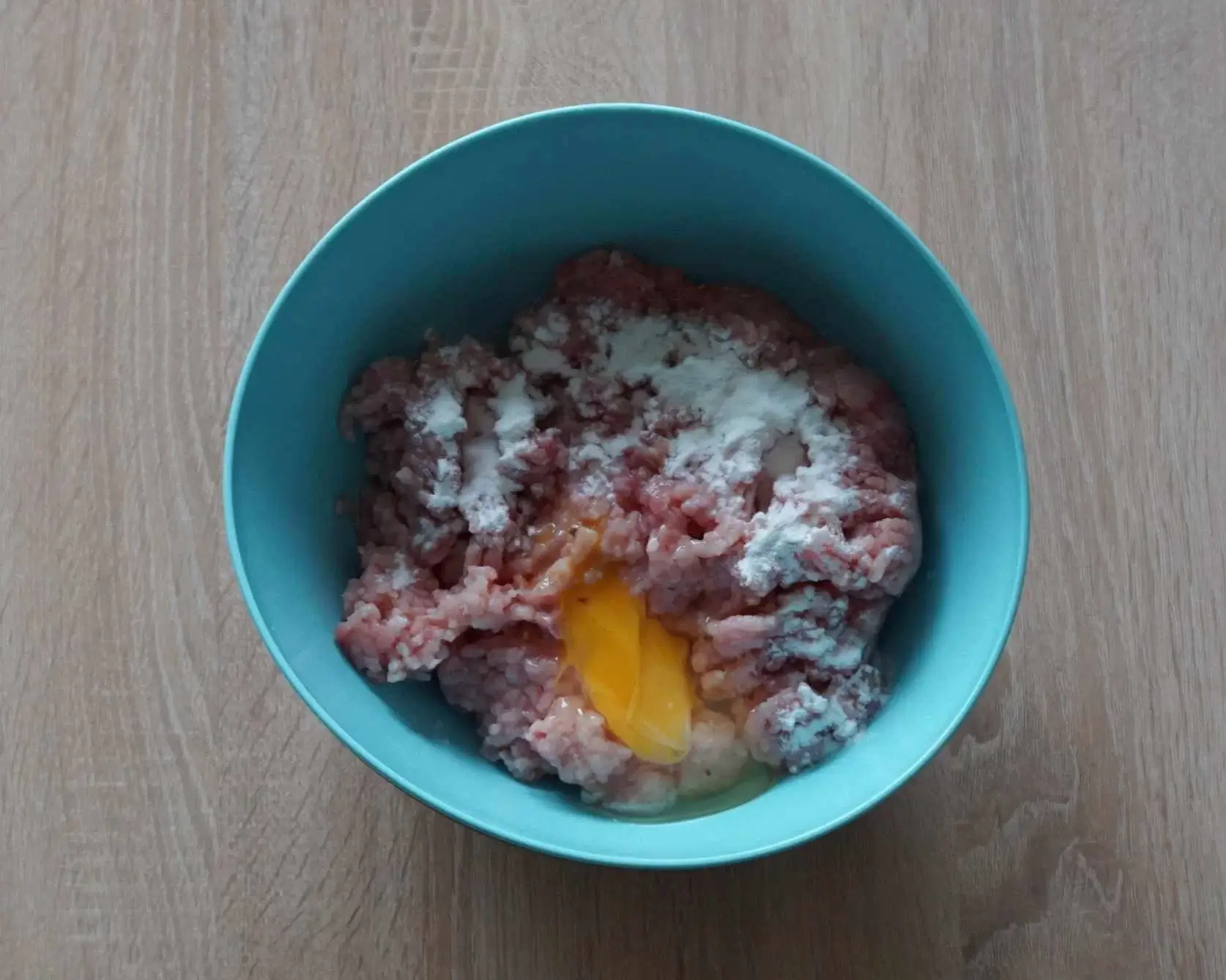 - Meanwhile, mix the egg and flour with the ground pork until a uniform mixture is achieved.